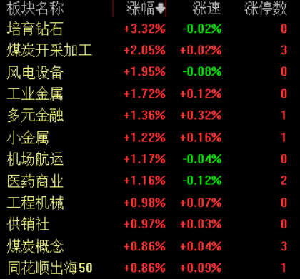 盘面上,AI应用 、电商、锂矿、消费电子 、稳定币、固态电池、算力题材纷纷走弱;超硬材料 、煤炭 、有色金属板块走强。