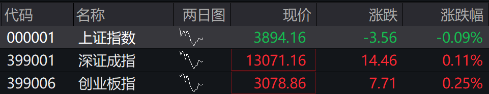 沪指低开0.09%,深成指高开0.11% ,创业板指高开0.25%。