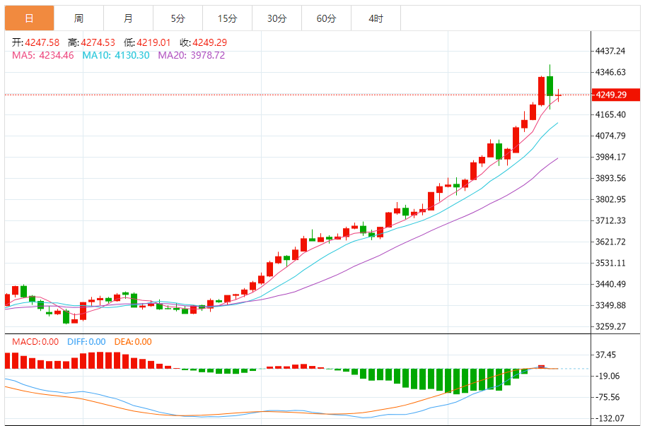 周一(10月20日)现货黄金目前在4252.93美元/盎司附近 ,上涨0.14% 。